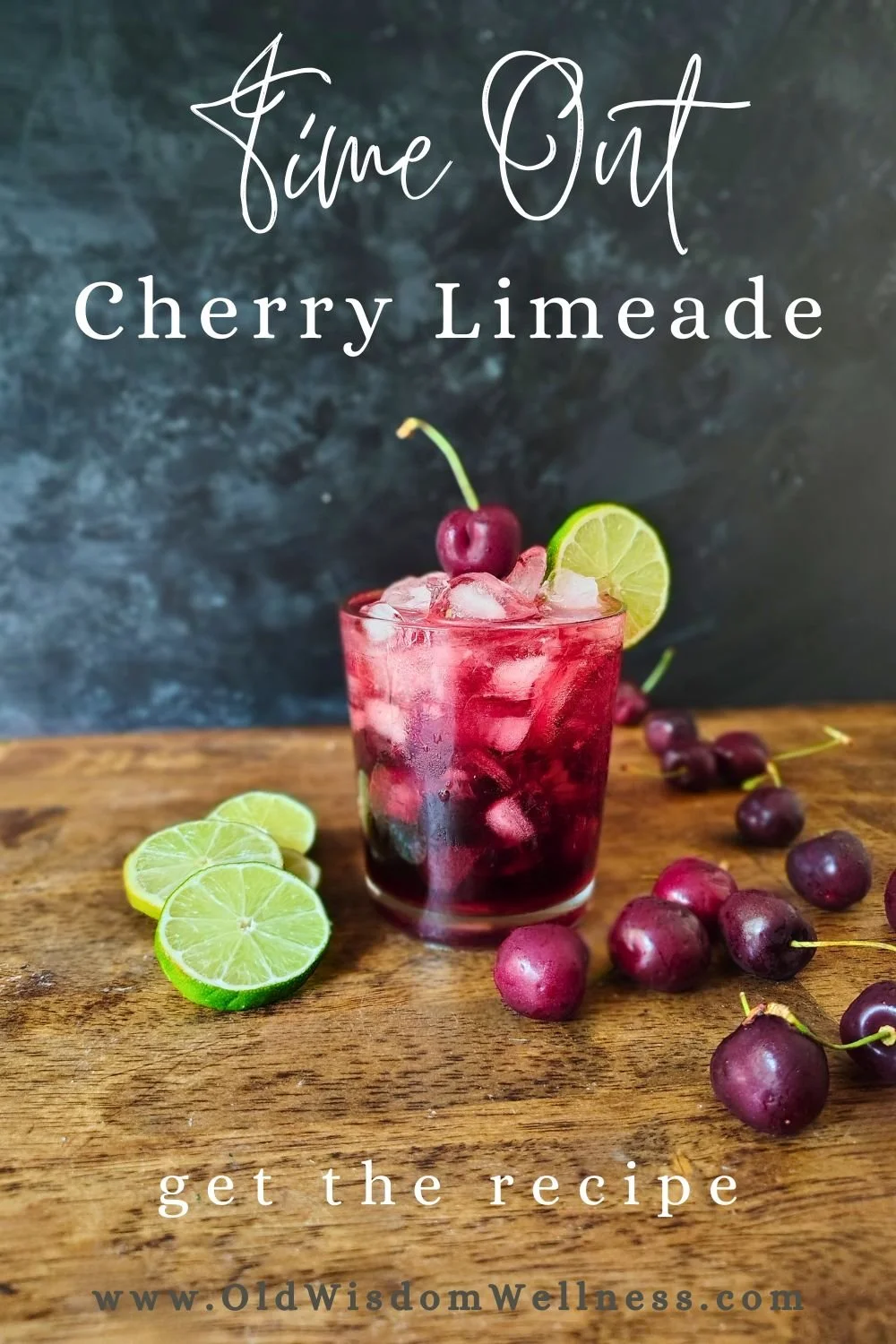 In a glass jar with a screw on lid, add sliced limes and sugar. Muddle to release juice from limes. Add ice and chilled tea. Tighten the lid and shake well. Stir in cherry juice and serve.
